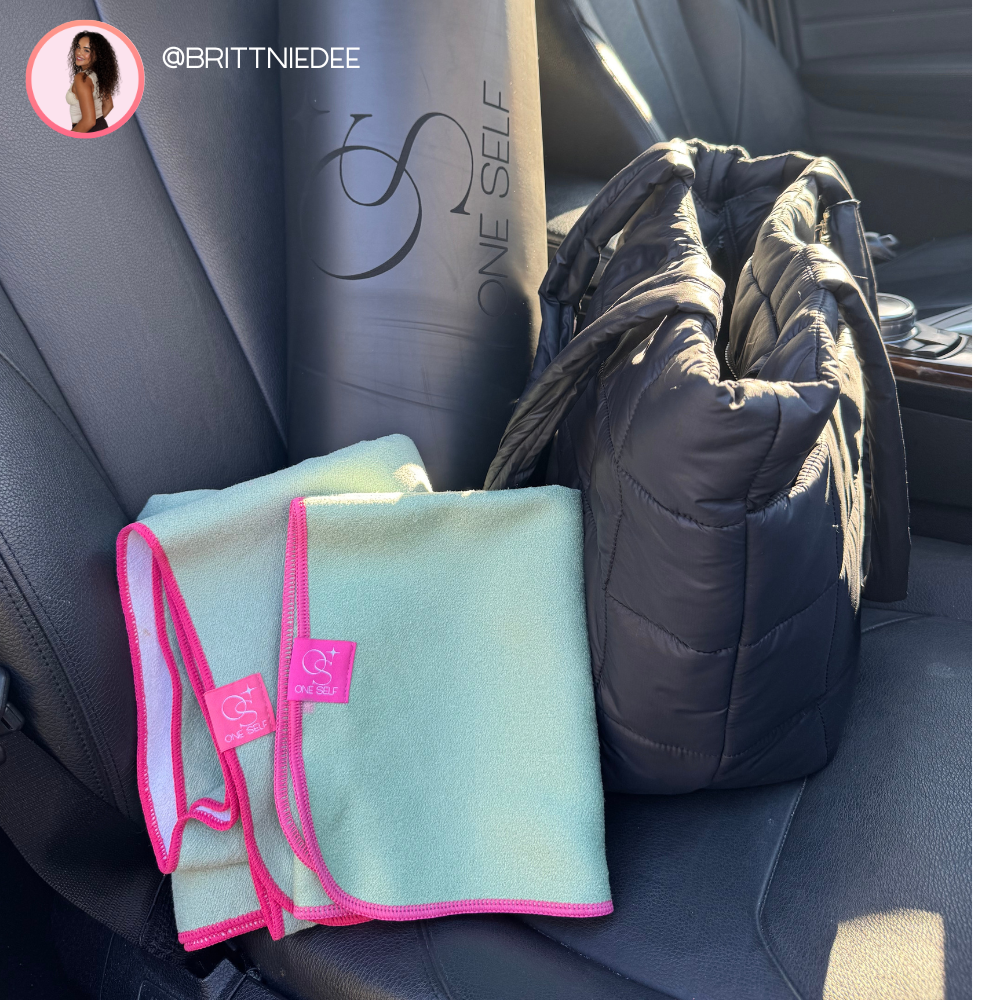 One Self™ was created to solve a simple but frustrating problem: a yoga towel that wouldn’t stay put. Founded by Natalie, our snap-together mat and towel system keeps you grounded, focused, and fully present in your practice.