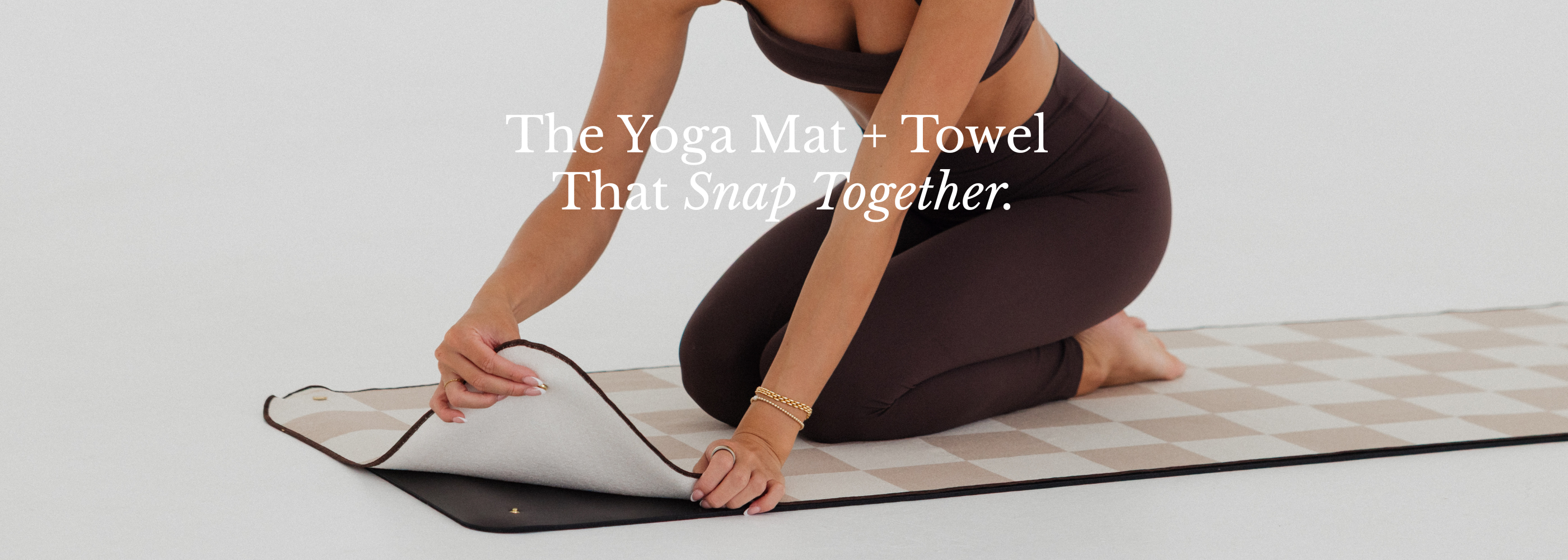PATENT-PENDING SNAPS THAT CONNECT OUR MAT + TOWEL FOR A STYLISH AND DISTRACTION-FREE PRACTICE